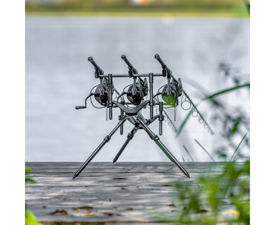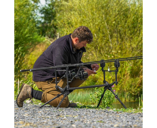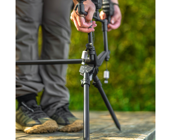 • Mechanizm ustawienia nóg w 4 różnych pozycjach ułatwiający pozycjonowanie wędzisk